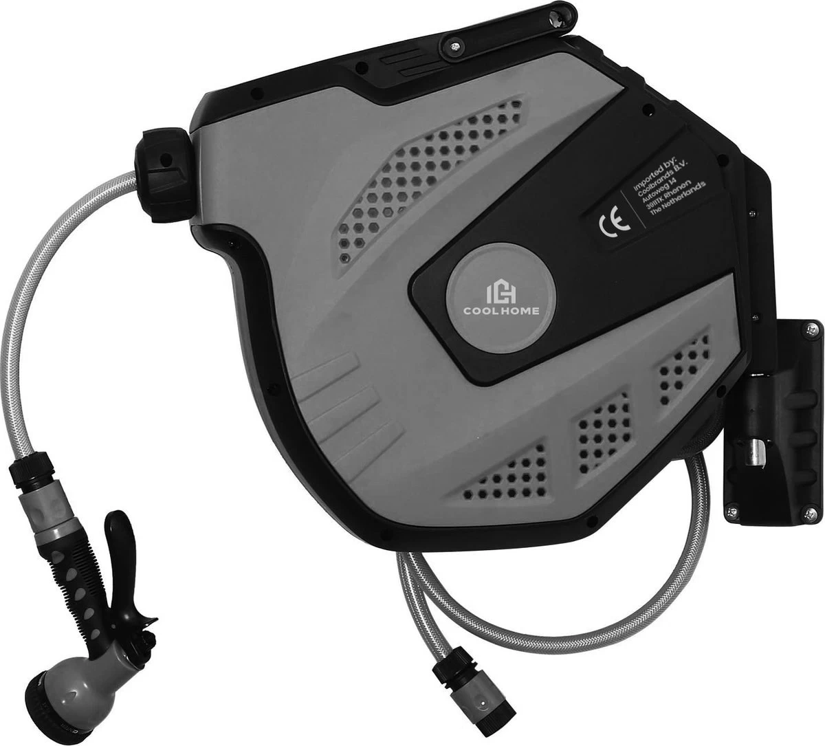 CoolHome – Wandslangenbox 20 Meter + 2 Meter – Tuinslang Met Haspel- Slangenhouder 180° Draaibaar – Tuinslanghaspel Zwart – Grijs