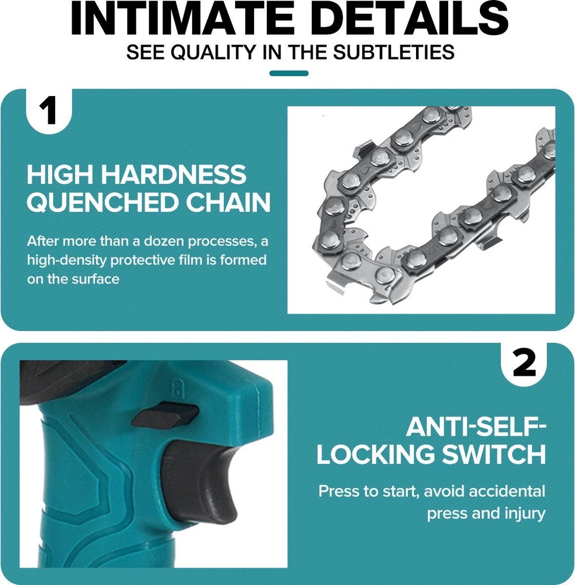 Merkloos Mini Accu Kettingzaag – 4 Inch Elektrische Boomzaag – Handkettingzaag – Met 2 Accu En 1 Oplader – Voor Tuinboom Ranch Bomen Snijden Hout- Blauw