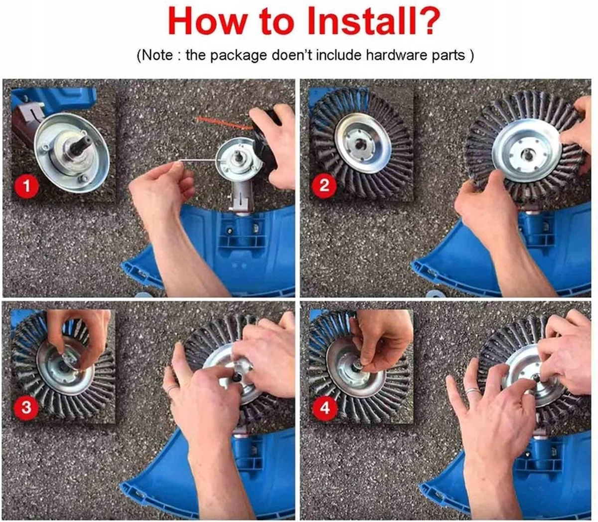 – Voor stihl modellen, moet je een moer M10x1.0 te krijgen, en na het installeren van een reductie ring van een gat 25,4 mm tot 20,0 mm, het past FS 300, FS 350, FS 400, FS 450 – U moet de genoemde stihl modellen te krijgen met een M10x1,5 moer