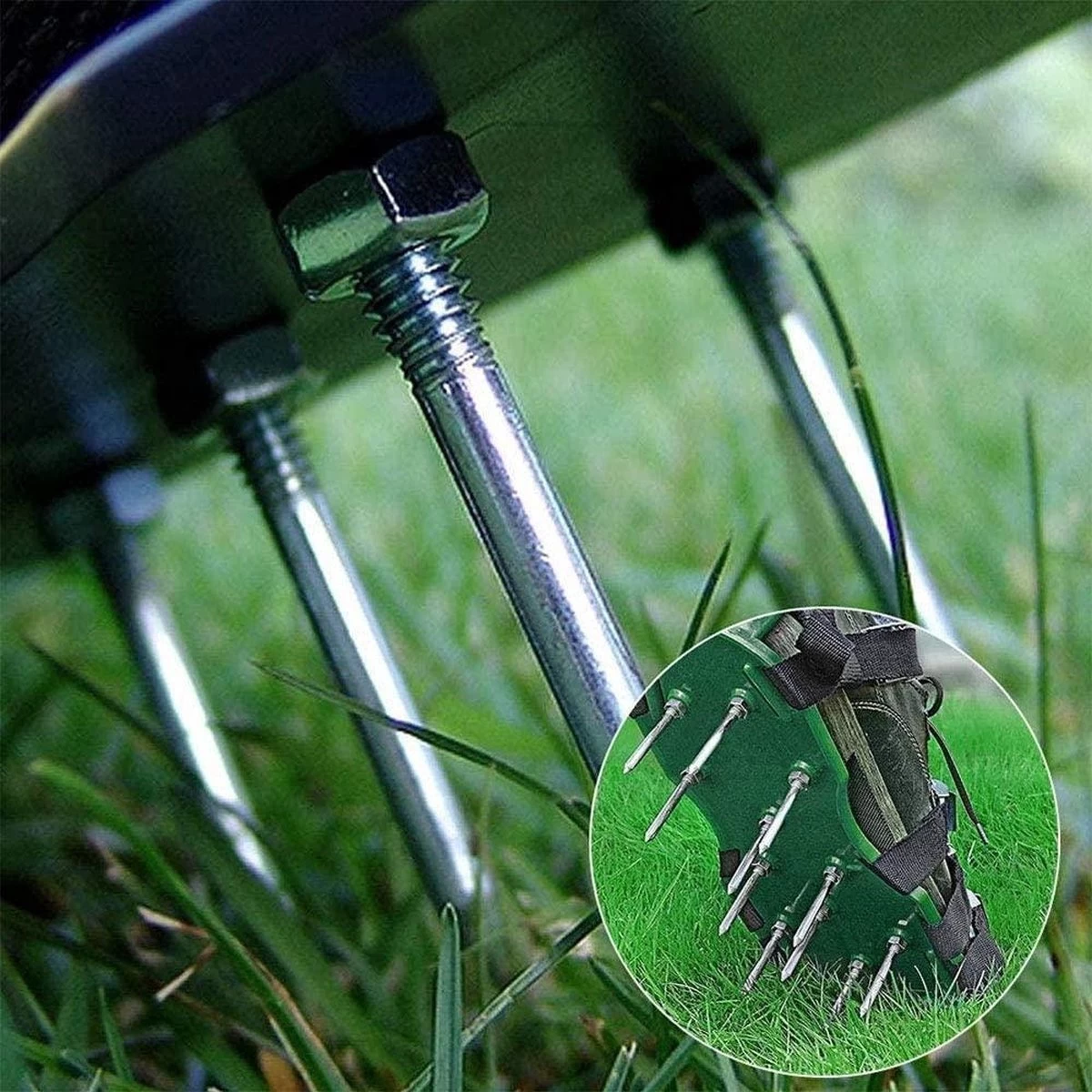 Deze gazonpriksandalen kunt u onder u schoenen binden, zo prikt u gaatjes in het gazon terwijl u loopt. Hierdoor worden nuttige micro-organismen geactiveerd in de bodem, wat beter is voor het gazon.